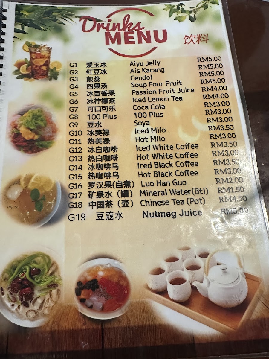 For beverage lovers, the classic Cola serves as a refreshing touch. The Nasi Lemak, a local favorite, offers a thrilling culinary adventure with its bold sambal, while the Bakuteh enchants with its aromatic herbs. Don't miss their special Curry Dry Noodle and delightful desserts like Cendol.